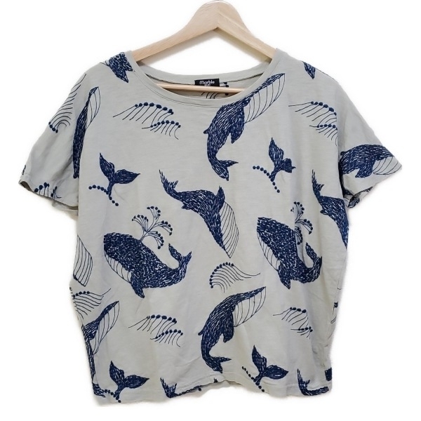 - マーブルシュッド marble SUD 半袖カットソー - グレーベージュ×ネイビー レディース クルーネック/刺繍/クジラ トップス