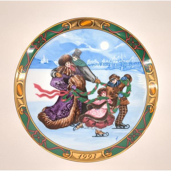 > 美品】 ロイヤルコペンハーゲン クリスマス・イン・デンマーク 1993年 The Skating Party 洋食器 イヤープレート 箱付 3 ◆2005