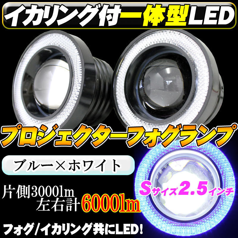 - LED 青イカリング付 プロジェクターフォグランプ 2.5インチ 12V 高輝度6000lm(左右計) デイライト 一体型LEDキット