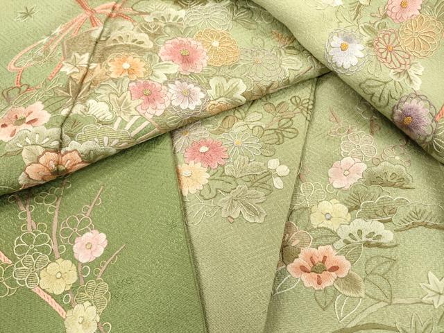 > 平和屋着物▼中国三大刺繍 相良刺繍 総刺繍 訪問着 扇面花文 暈し染 正絹 逸品 DAAW3780fe