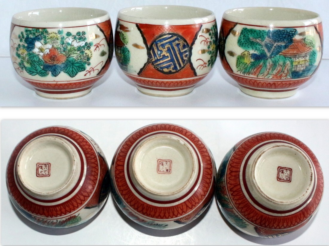 - 1492/中古/九谷焼 九谷庄三 湯呑 3客セット ※湯飲み 茶器