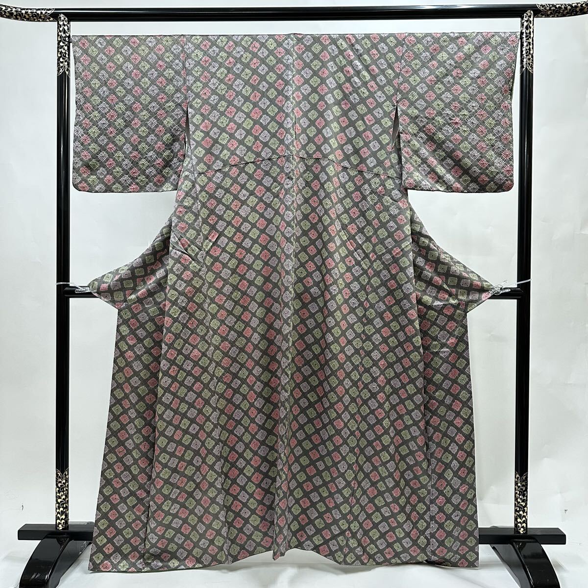 > 【七福】c911 正絹 小紋 絞り染 手蜘蛛絞り 地模様 暗文 袷 着物 仕立て上がり 逸品 身丈 約160.5cm 裄 約66cm