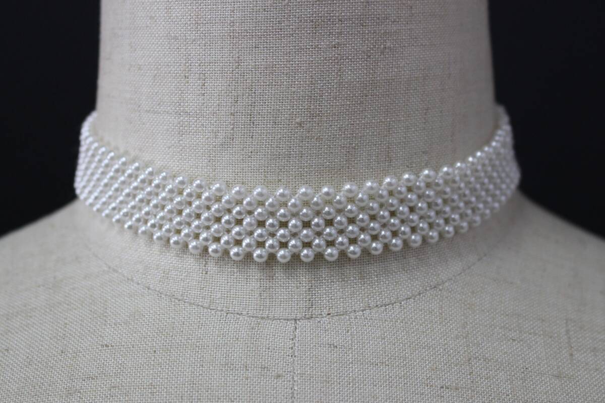 - 定形外郵便の送料込み(AT-02)白いパールのチョーカー(樹脂製)