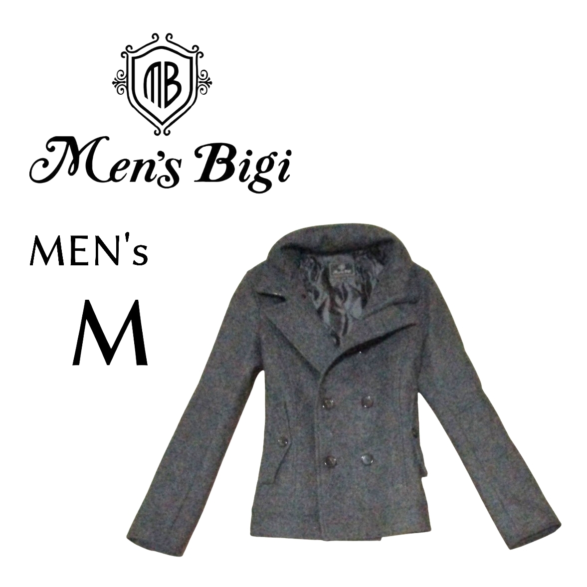 - メンズMサイズ MEN’S BIGI メンズビギ ショート丈ピーコート gray色