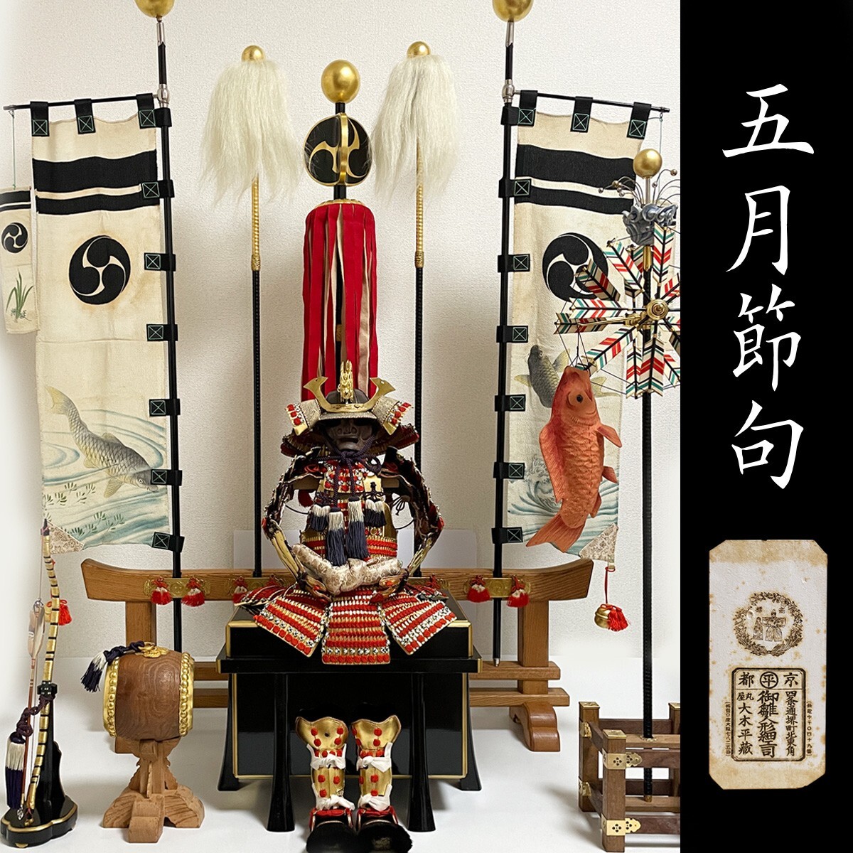 - 送料無料 大正初期 京都 丸平 大木平蔵 五月節句飾 座敷幟 鎧 弓 太鼓 鯉のぼり 五月人形 共箱