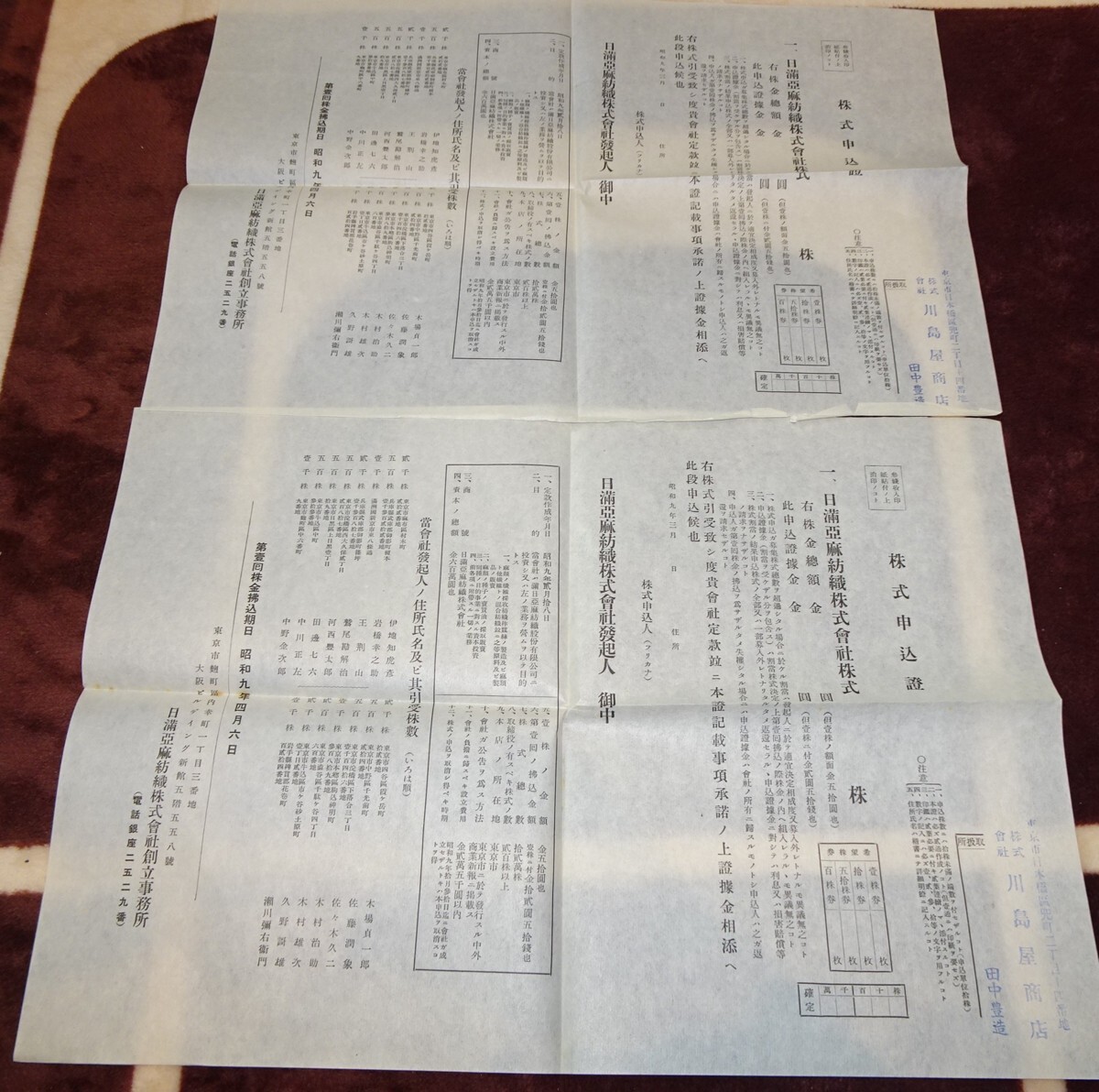 - rarebookkyoto m36 満洲 日満亜麻紡織株式会社 株式申込書 1935 年 満鉄 中国 大連 旅順 溥儀 東北