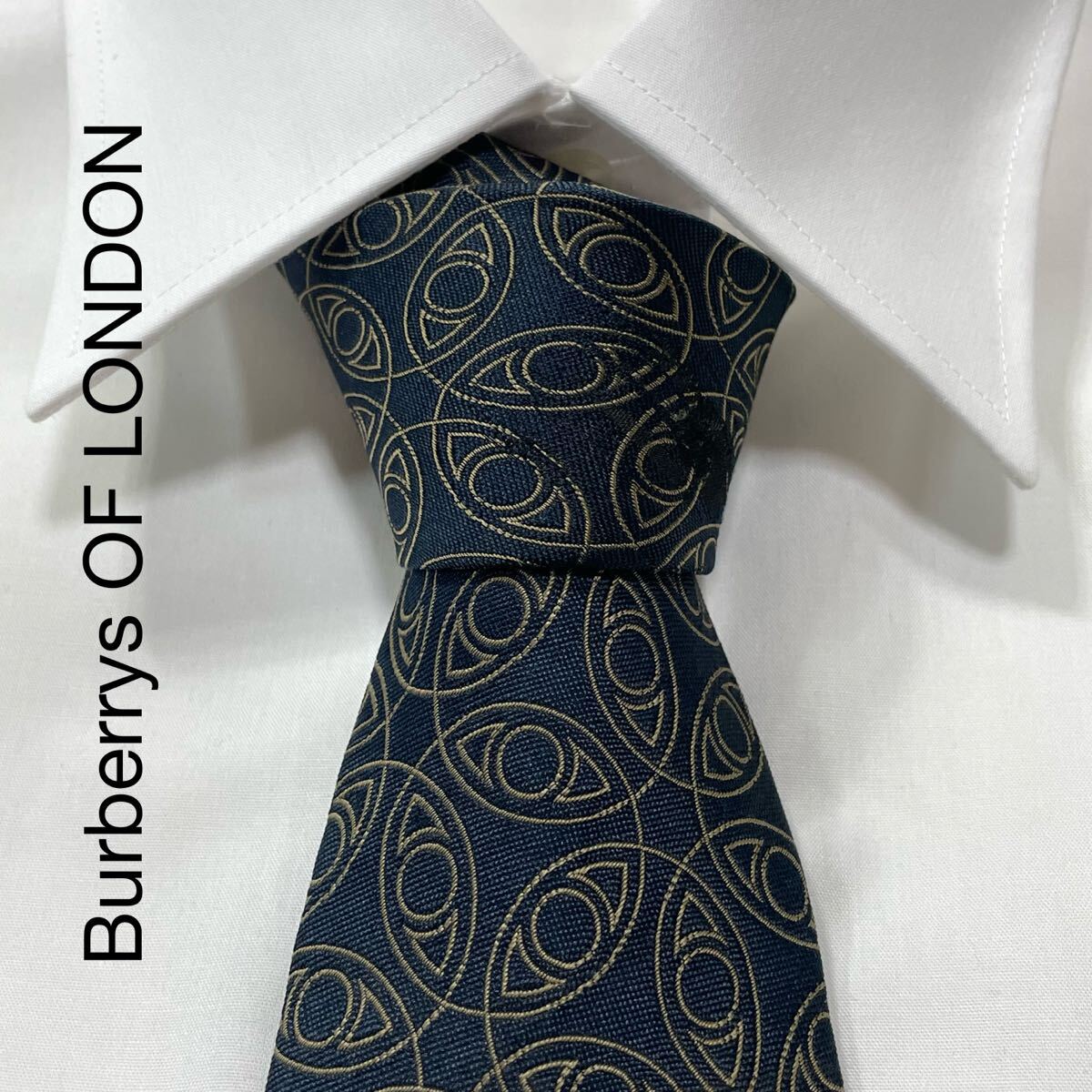 - Burberrys OF LONDON バーバリーロンドン パターン柄 ジャガード シルク ネクタイ ネイビー TG2931