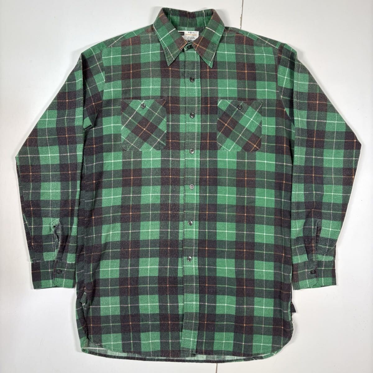 - 【M】70s Vintage Sears Print Flannel Shirt 70年代 ビンテージ シアーズ プリント フランネル シャツ マチ付き 衿芯 T1468