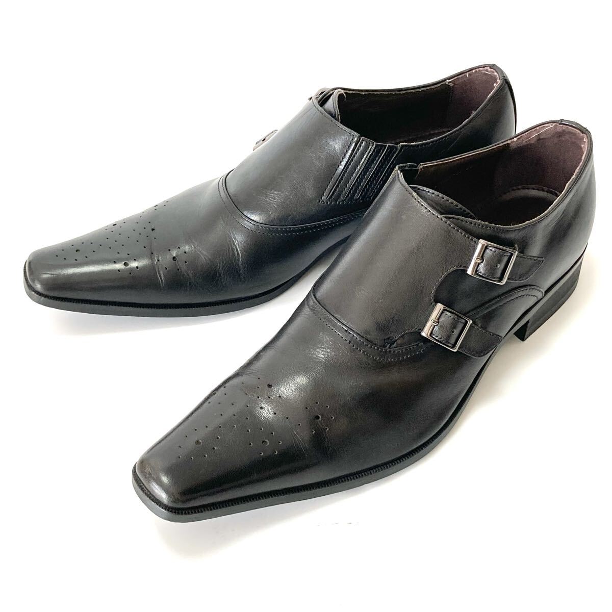 - モンクストラップシューズ本革レザー ビジネスシューズ25、5cmメンズ 紳士靴 革靴 ドレスシューズ 黒 ブラック