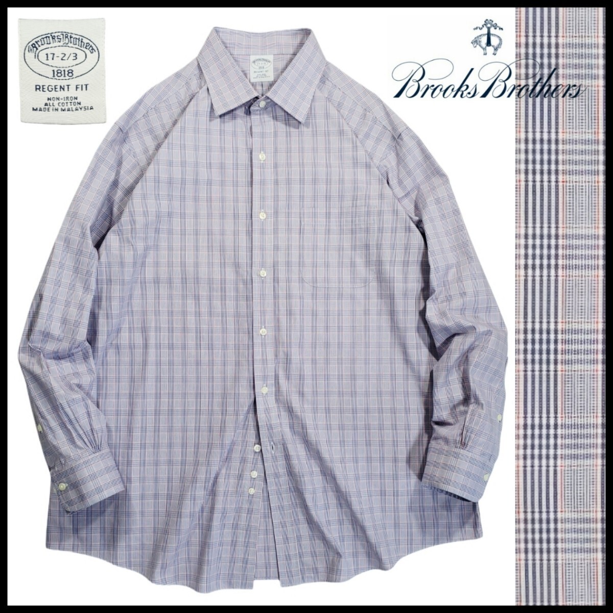 > w334/古着 BROOKS BROTHERS 1818 REGENT FIT 長袖シャツ 17 2/3 ワイシャツ チェック ブルックスブラザーズ 洗濯プレス済 ネコポス可