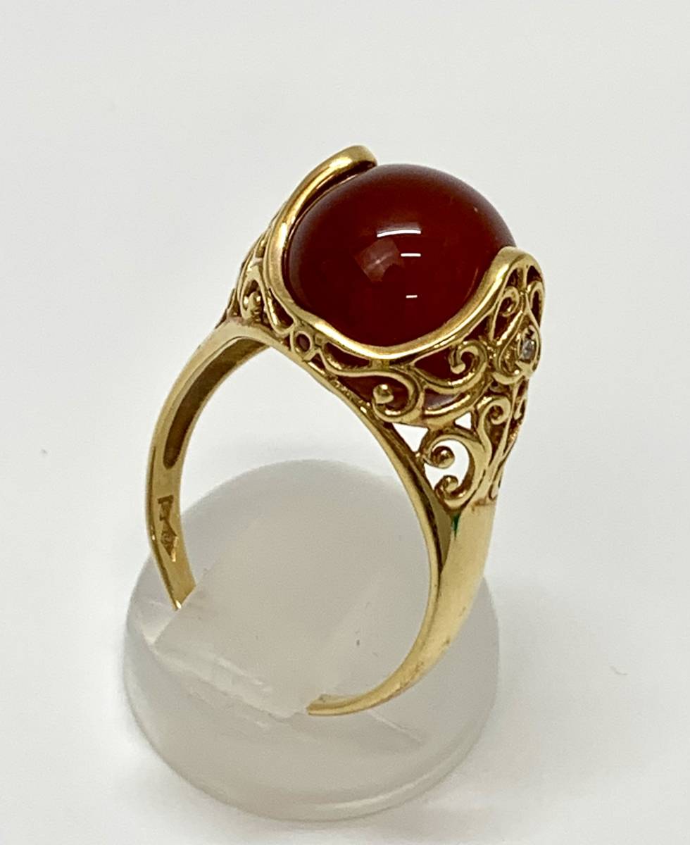 - 【送料無料】★台座デザイン可憐★K18 750刻印 レッドストーン リング☆メレダイヤモンド 0.01ct 総重量5.7g #15 指輪 店舗受取可