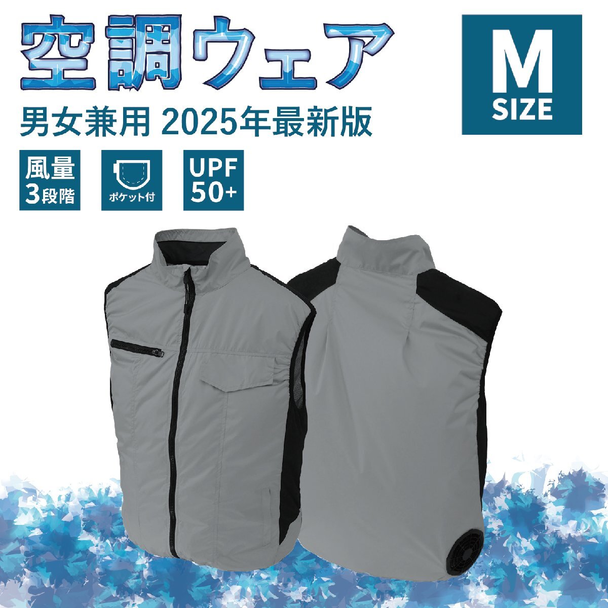 - 空調作業服 空調ベスト 空調ウェア ファン付きウェア 3段階風量調節 強風送風 UVカット 保冷剤ポケット 作業服 夏 Mサイズ ユニセックス