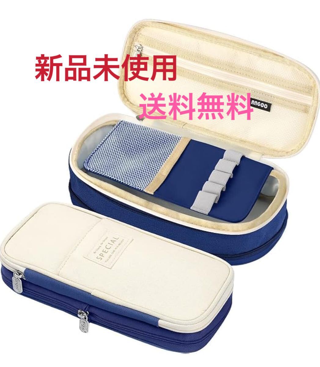 - 多機能 ペンケース 大容量 小物収納 ダークブルー