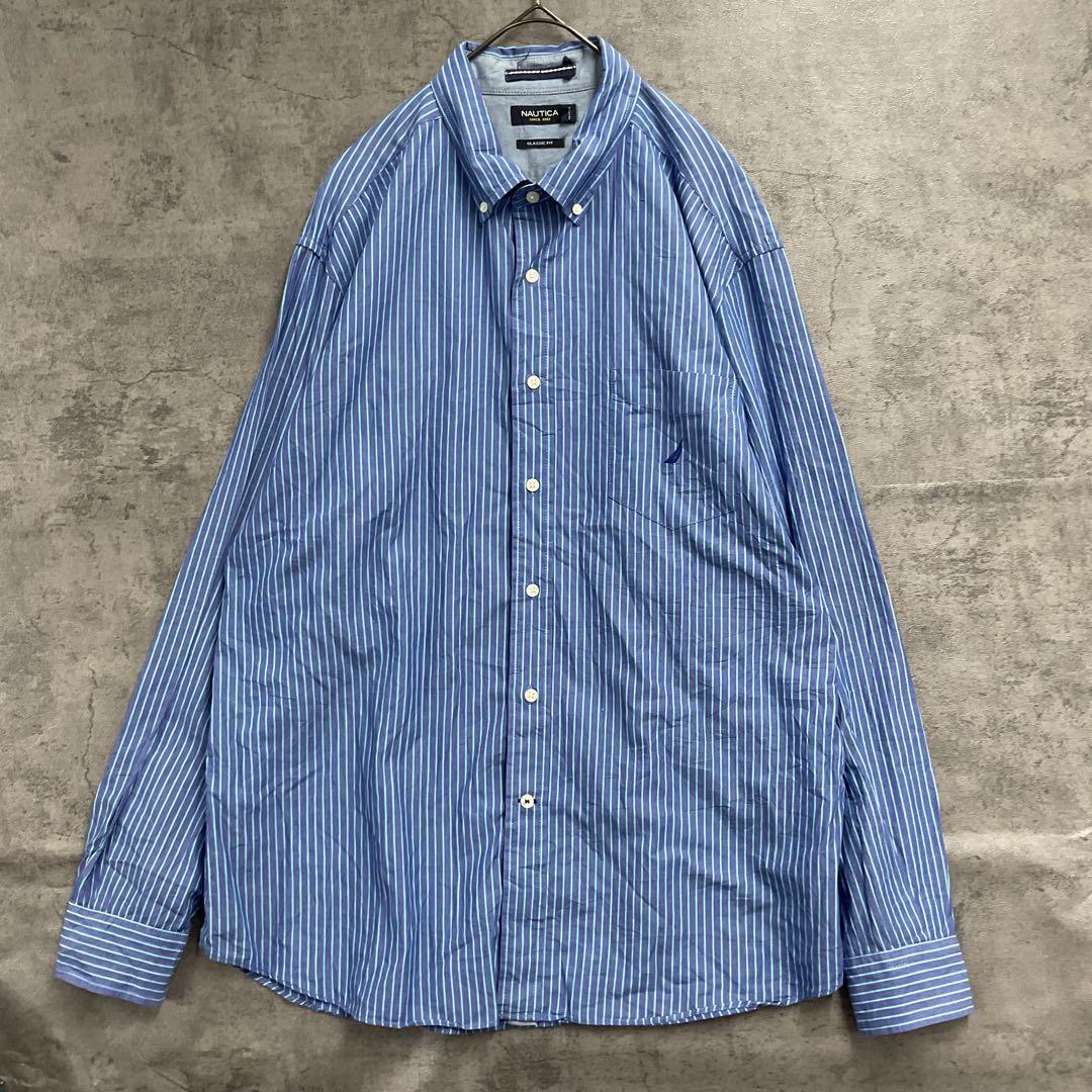 - ノーティカ ストライプ 長袖シャツ ブルー コットンシャツ XL 【6011】