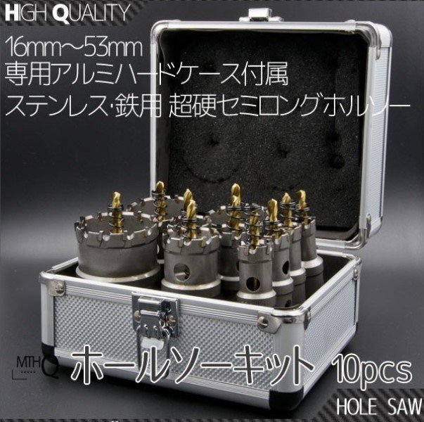 - 超硬ホルソー10セット ホールソー 10pcs ステンレス 鉄用 超硬セミロング HSS ハイス鋼 専用アルミ製ハードケース付