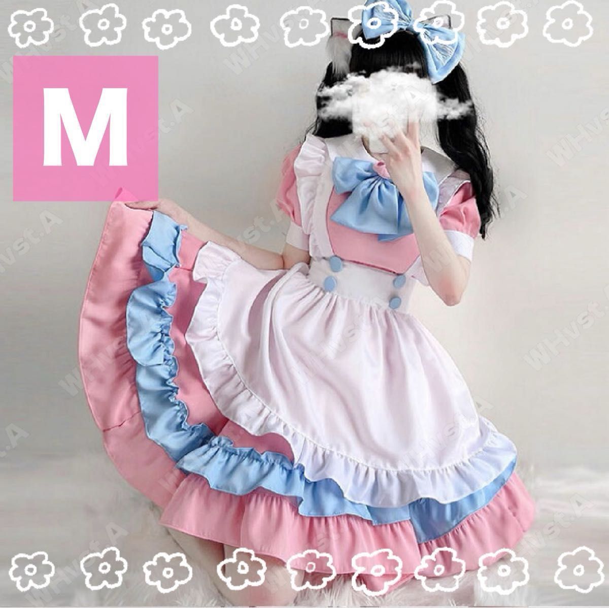 - M メイド服 ロリータ コスプレ セット コスチューム ピンク 人気 ハロウィン ピンクメイド イベント