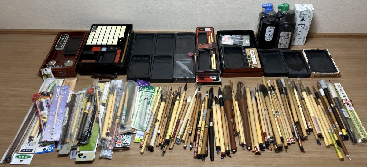 - 10-13 書道具 まとめ 大量 硯 すずり 墨 文鎮 固形墨 筆 毛筆 中国筆 習字 書道 未使用品 使用品