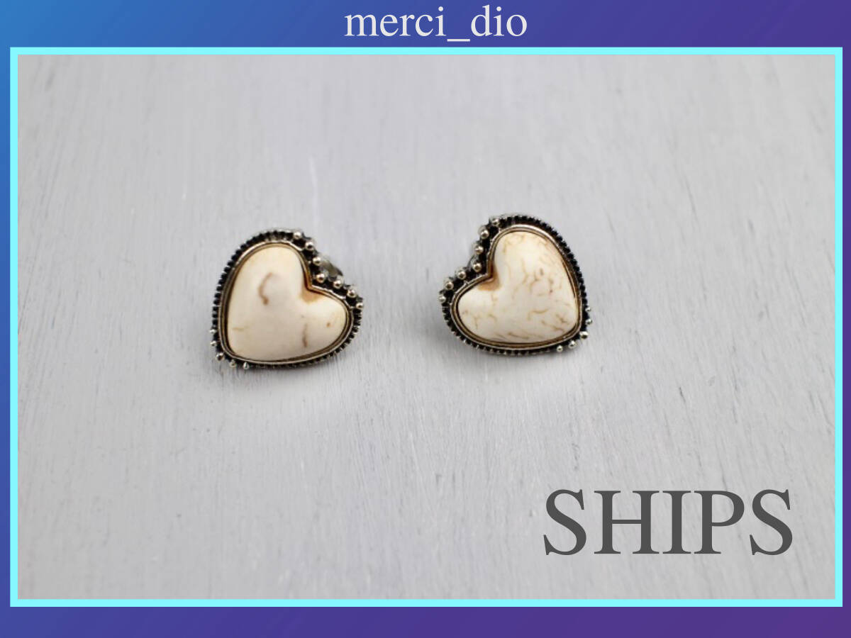 - シップス SHIPS アンティークシルバー ハート エクリュカラー ホワイト スタッドピアス 立体ハート 新品 未使用 wai ロンハーマン