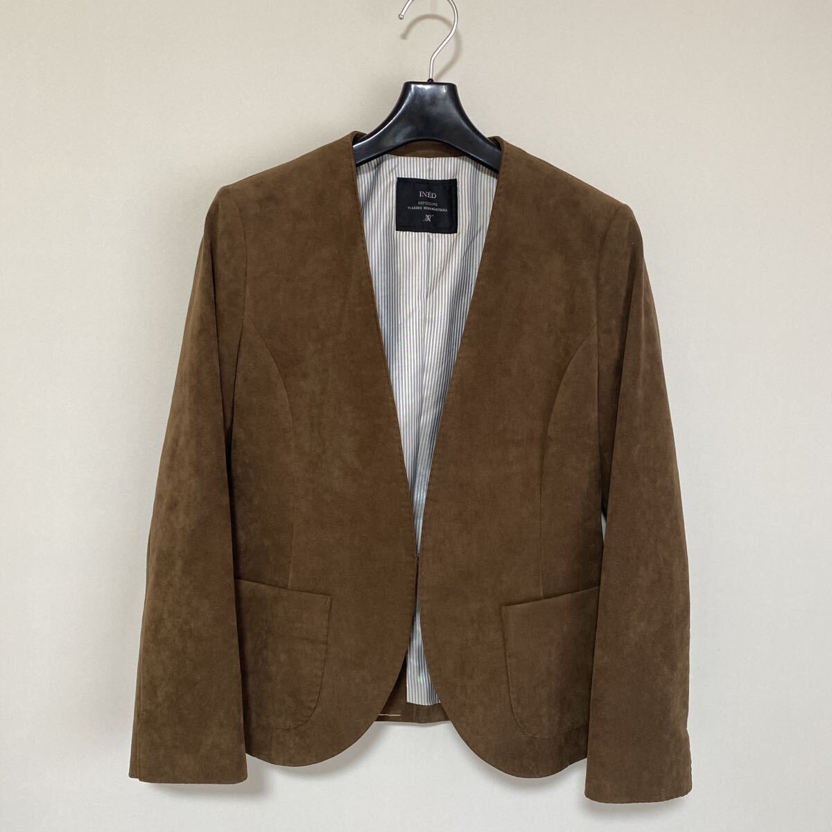 - イネド Vカラー 11 ノーカラージャケット ブラウン スエード DMW