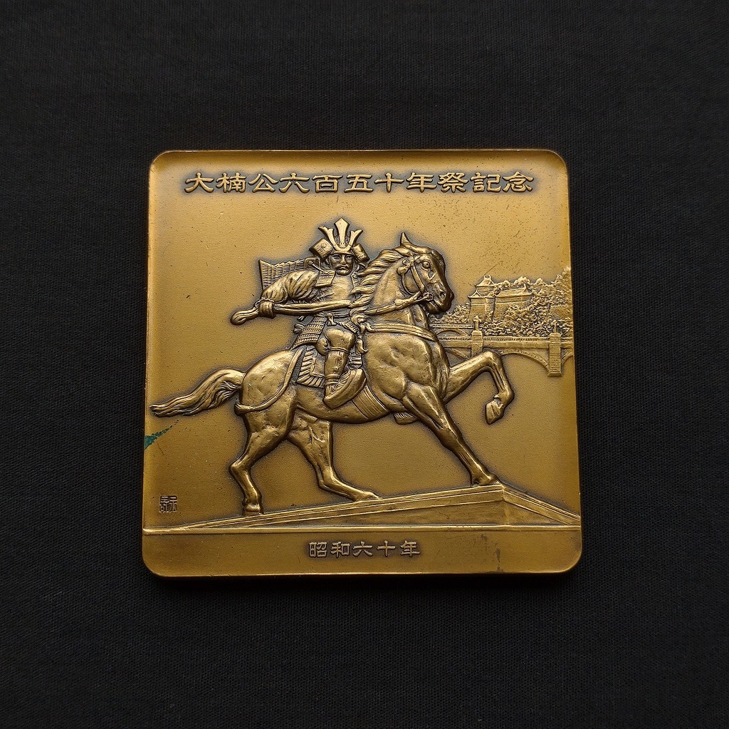 - 記念メダル 四角形 湊川神社 大楠公六百五十年祭記念 昭和六十年 昭和レトロ 【6415】