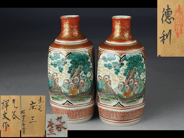 - 【西】I108 九谷 祥文作 庄三 徳利 一対 共箱