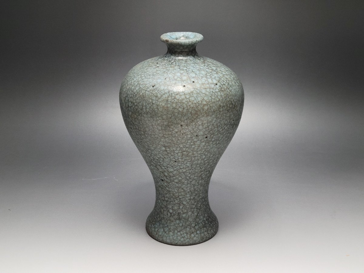 - H 青磁 花瓶 時代唐物 高さ約22.5cm / 宋元時代 花瓶 飾瓶 花插 茶道具 茶器 人間国宝 李朝 高麗 古玩 古董