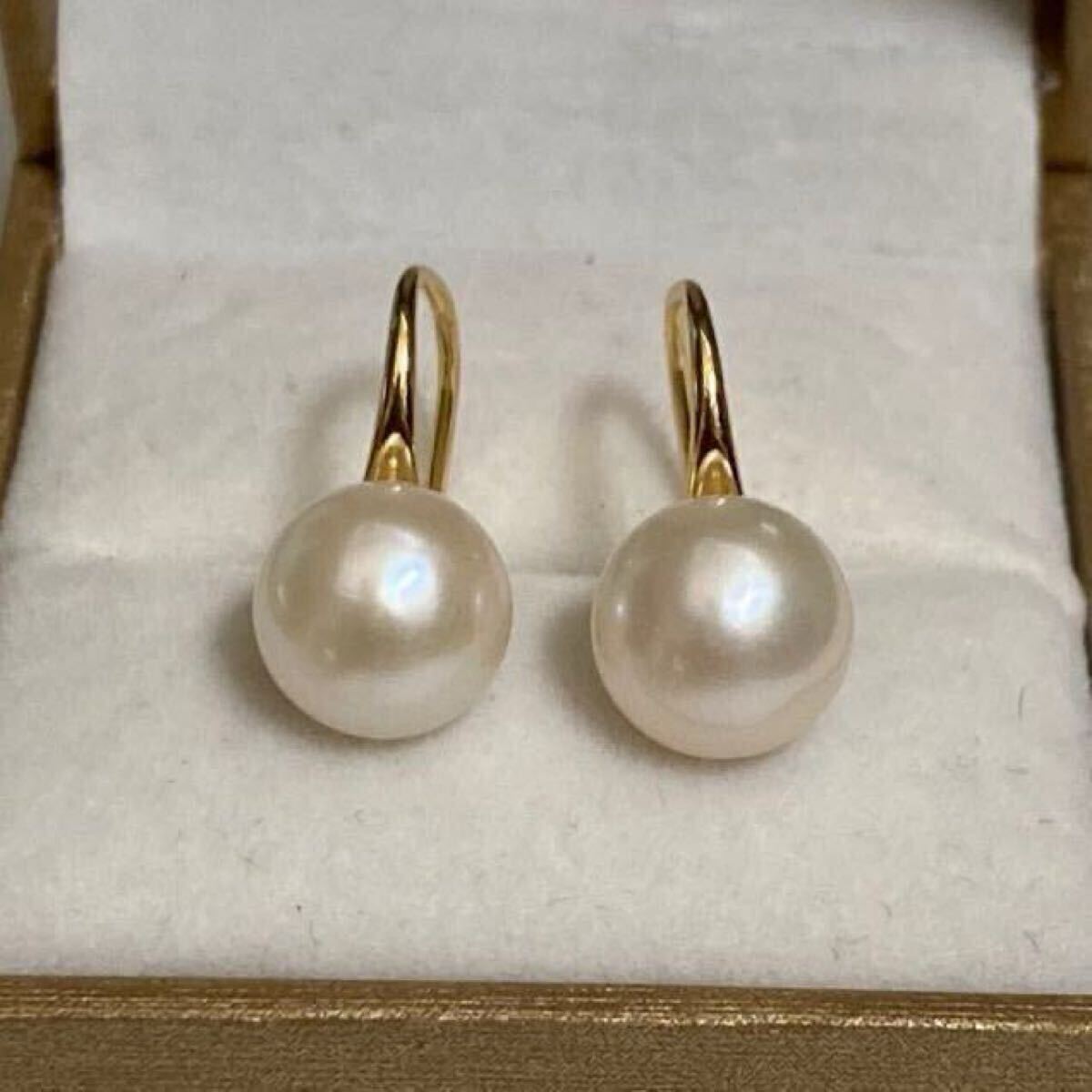 - 天然真珠ピアス k18GP アレルギー対策 9.5-9mm クリーム系ホワイトac10