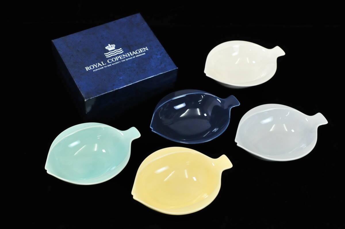> Royal Copenhagen ロイヤルコペンハーゲン FAJANCE フィッシュプレート5点 全長:約15cm 箱有 食器 03408049-4