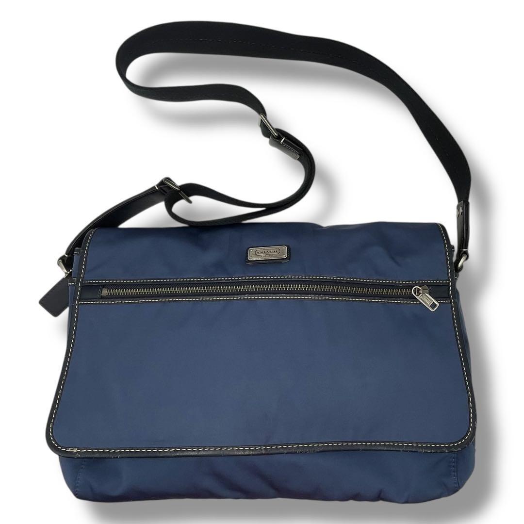 - 極美品 COACH コーチ メッセンジャー ショルダー ビジネス A4 ブルー クロスボディ