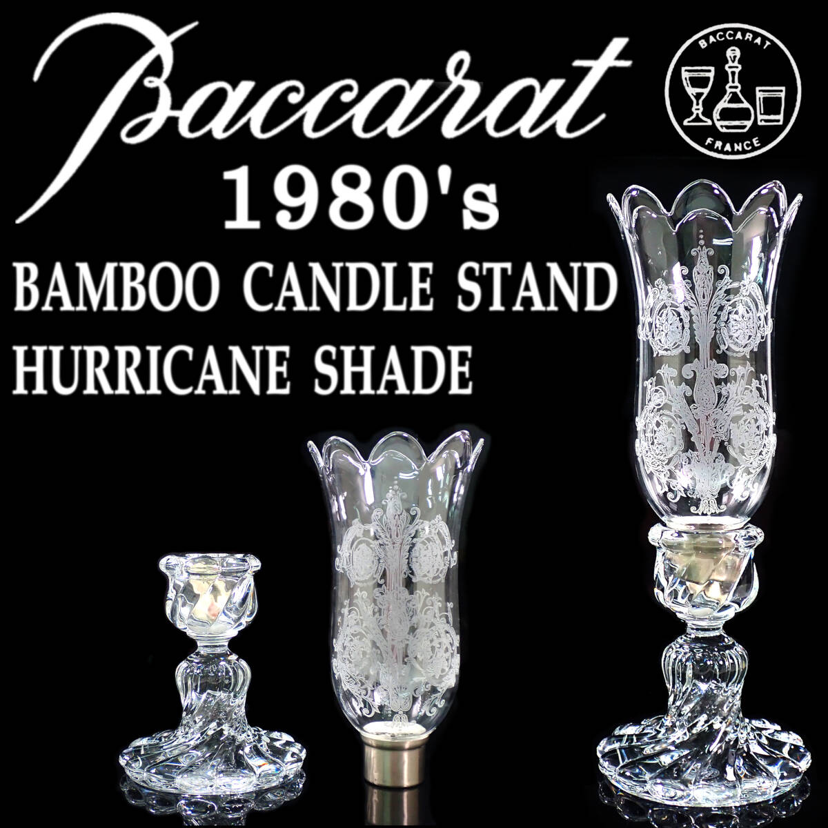 > 1980's Baccarat BAMBOO CANDLE STAND HURRICANE SHADE φ13.3cm×高35cm バカラ バンブーキャンドルスタンド ハリケーンシェード