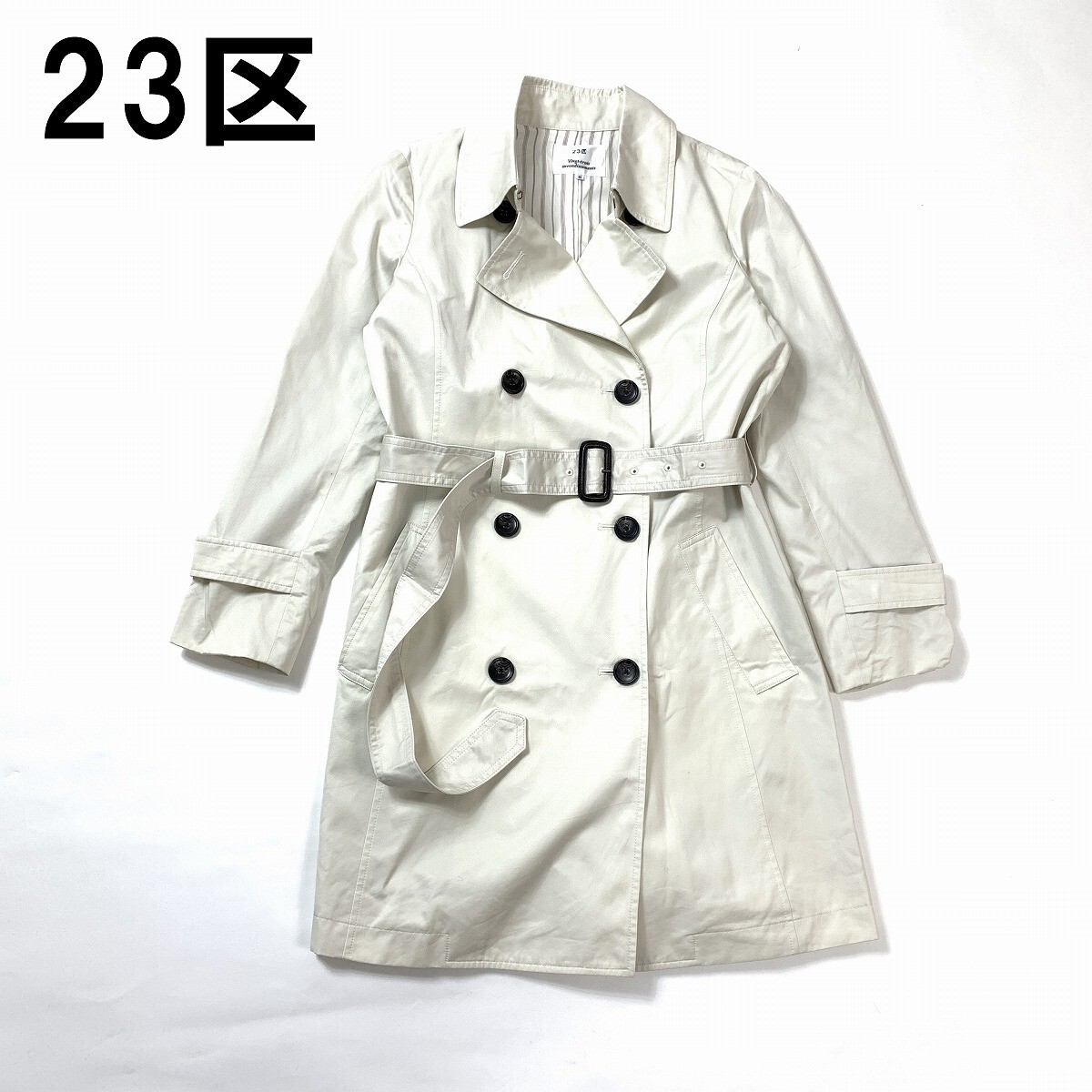 - 23区 トレンチコート 綿 コットン ベルト付き 裏地あり ライトベージュ アイボリー 34 YC1190