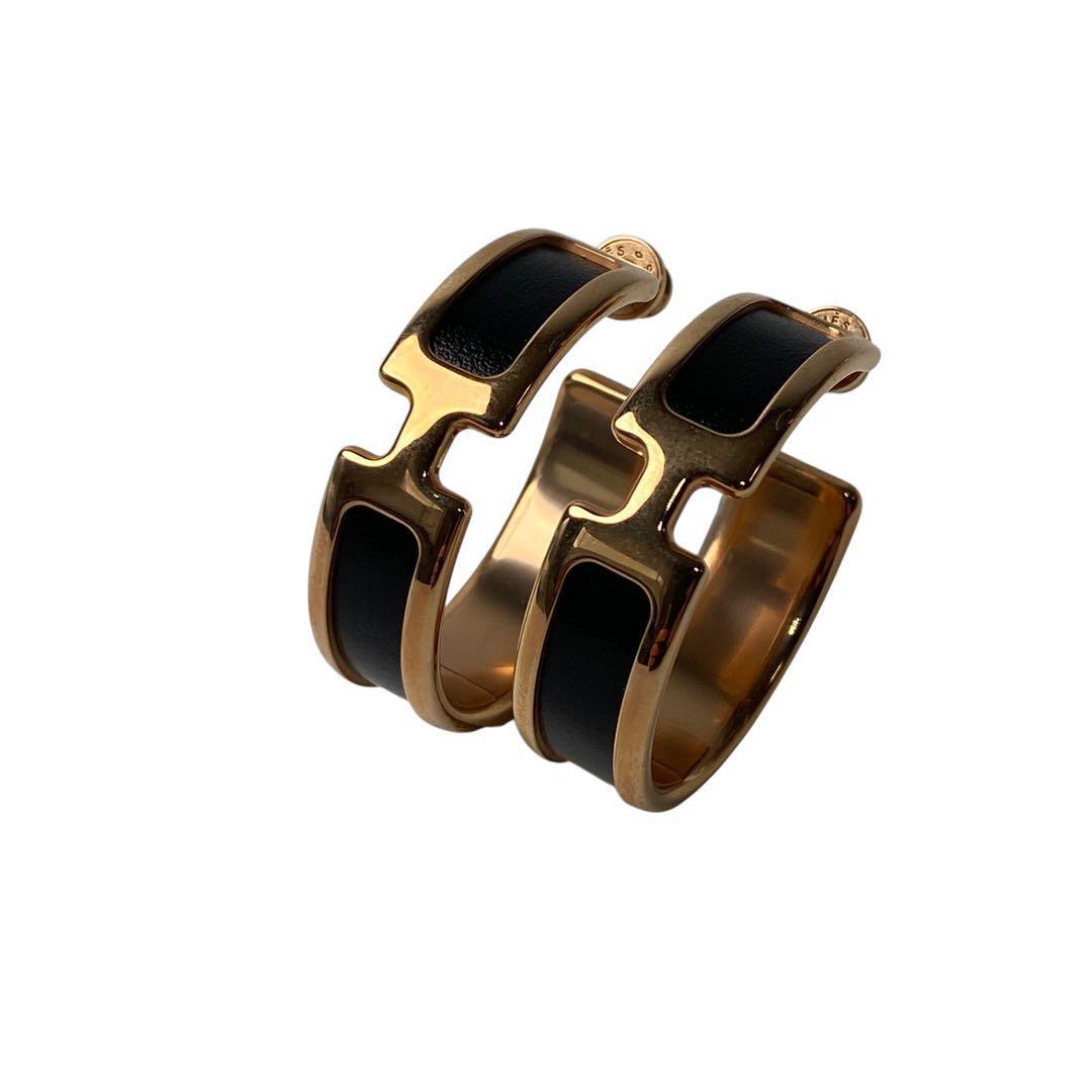 - 美品 エルメス HERMES オランプ フープ ピアス ブラック ゴールド