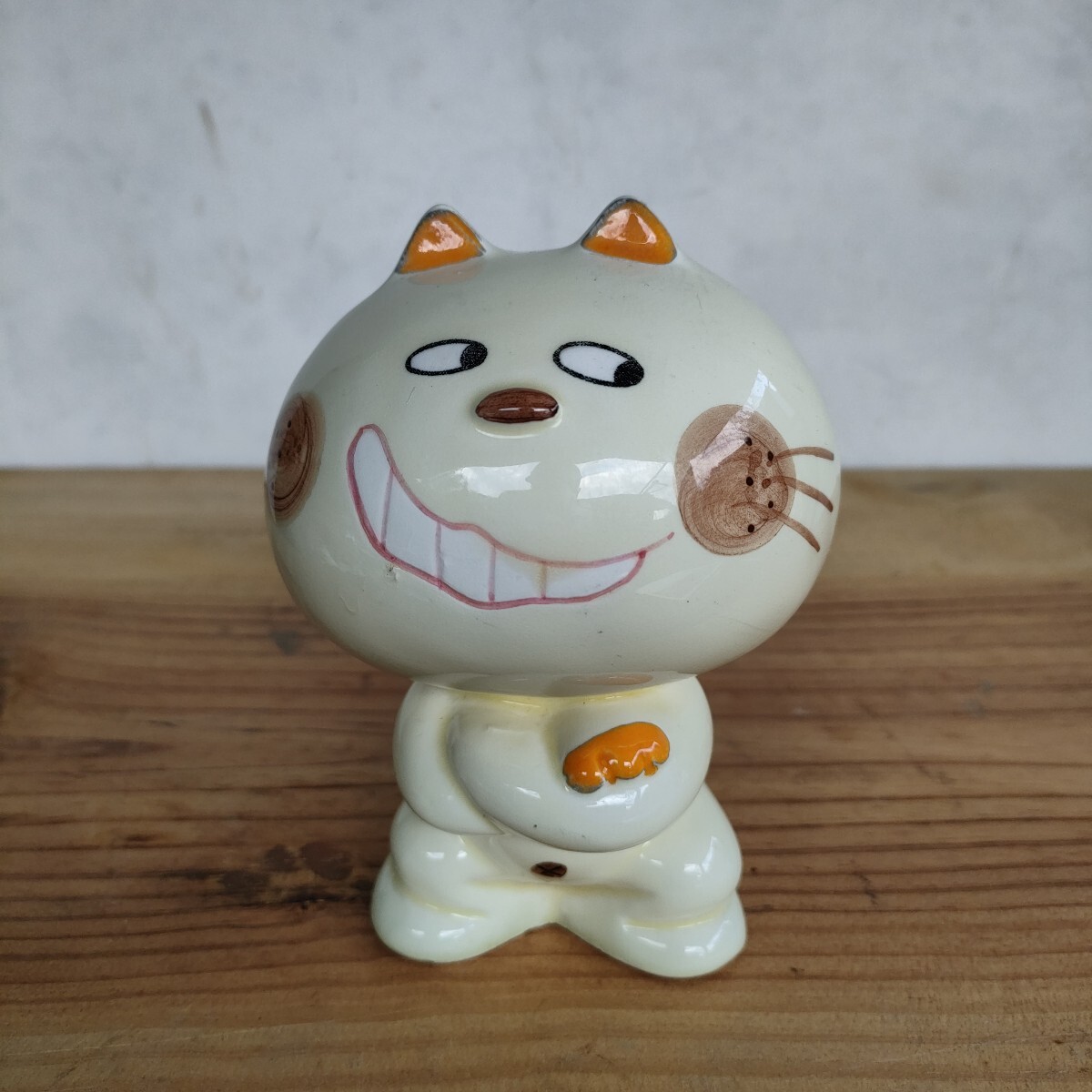 - 水森亜土 猫 貯金箱 ミータン みーたん 高さ12.5cm 陶器 当時物 昭和レトロ 内藤ルネ ネコ ねこ ファンシー ポップ