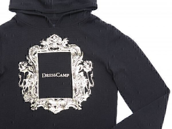 > ★美品★DressCampドレスキャンプ ゴールドロゴプリント プルオーバーニットパーカー★46 M【5003-220805】ブラック黒【本物保証】難あり