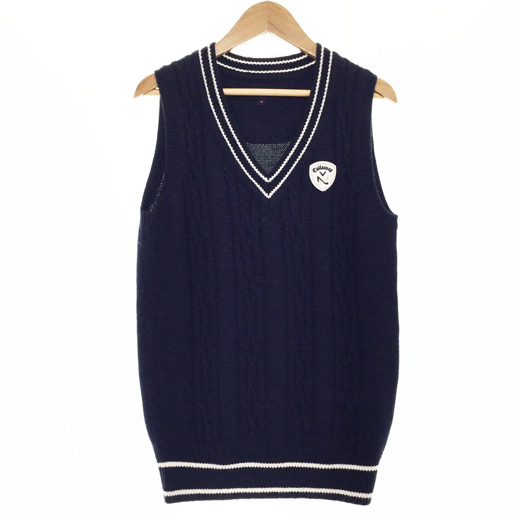 - ★未使用 Callaway キャロウェイ Vネック ケーブル編み ニットベスト サイズM レディース ネイビー×ホワイト 241-5261842 1BB/93907