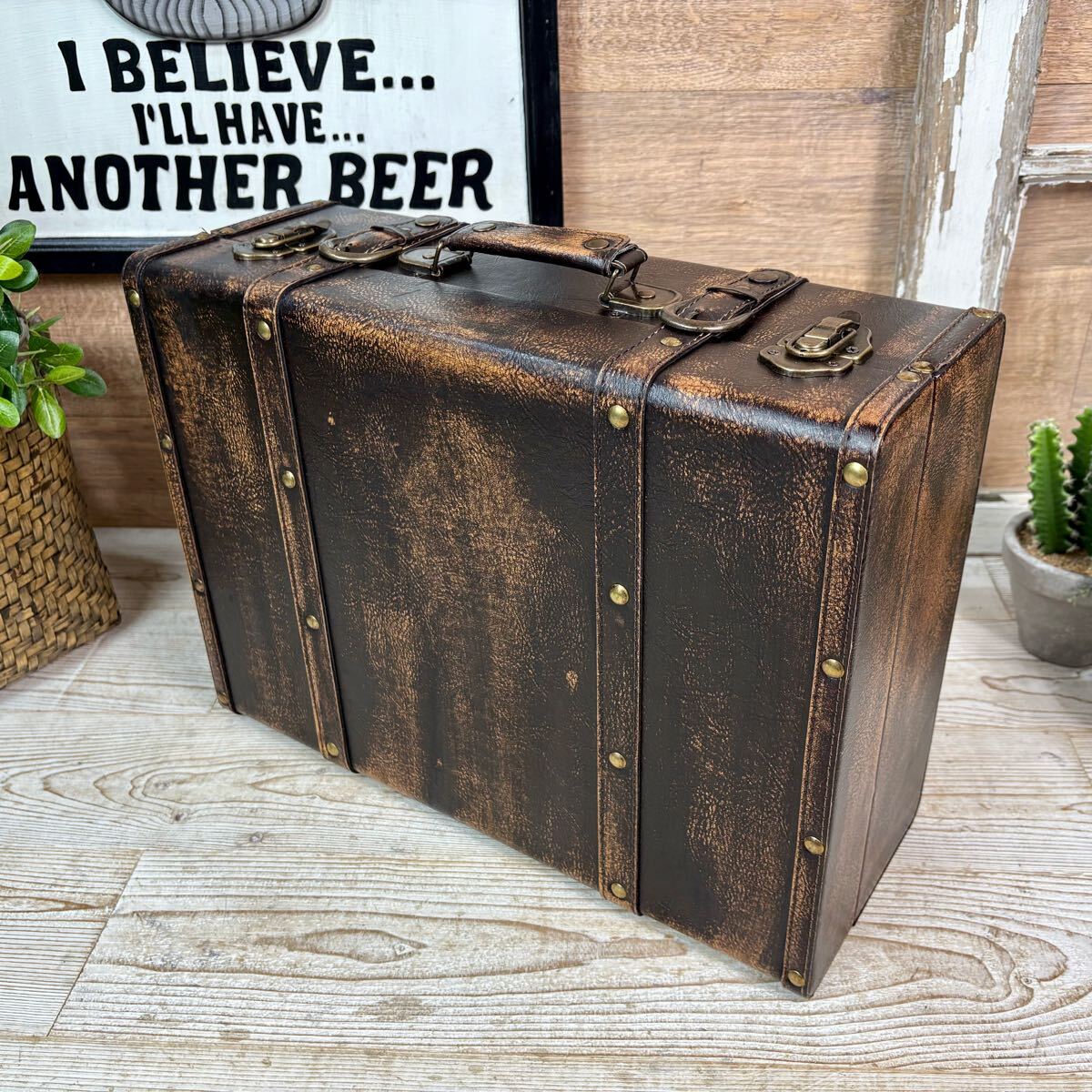 - アンティーク、ビンテージ調トランク型レザーケース小物入れディスプレイ収納ボックス 宝箱 インテリア収納家具ウェルカムボックス