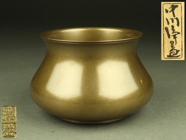 - 【宇】2822 中川浄益造 唐銅建水 共箱 茶道具
