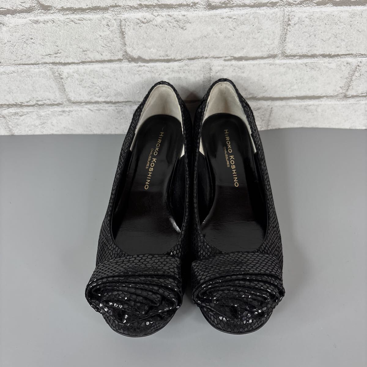 - HIROKO KOSHINO パンプス 黒系 22.5cm ヒール約3cm 日本製 ブラック ヒロココシノ