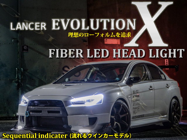 > 即納【正規品】三菱 第4世代 ランサーエボリューションⅩ/フォルティス CZ4A 流れるウインカー ファイバーLEDヘッドライト エボ10