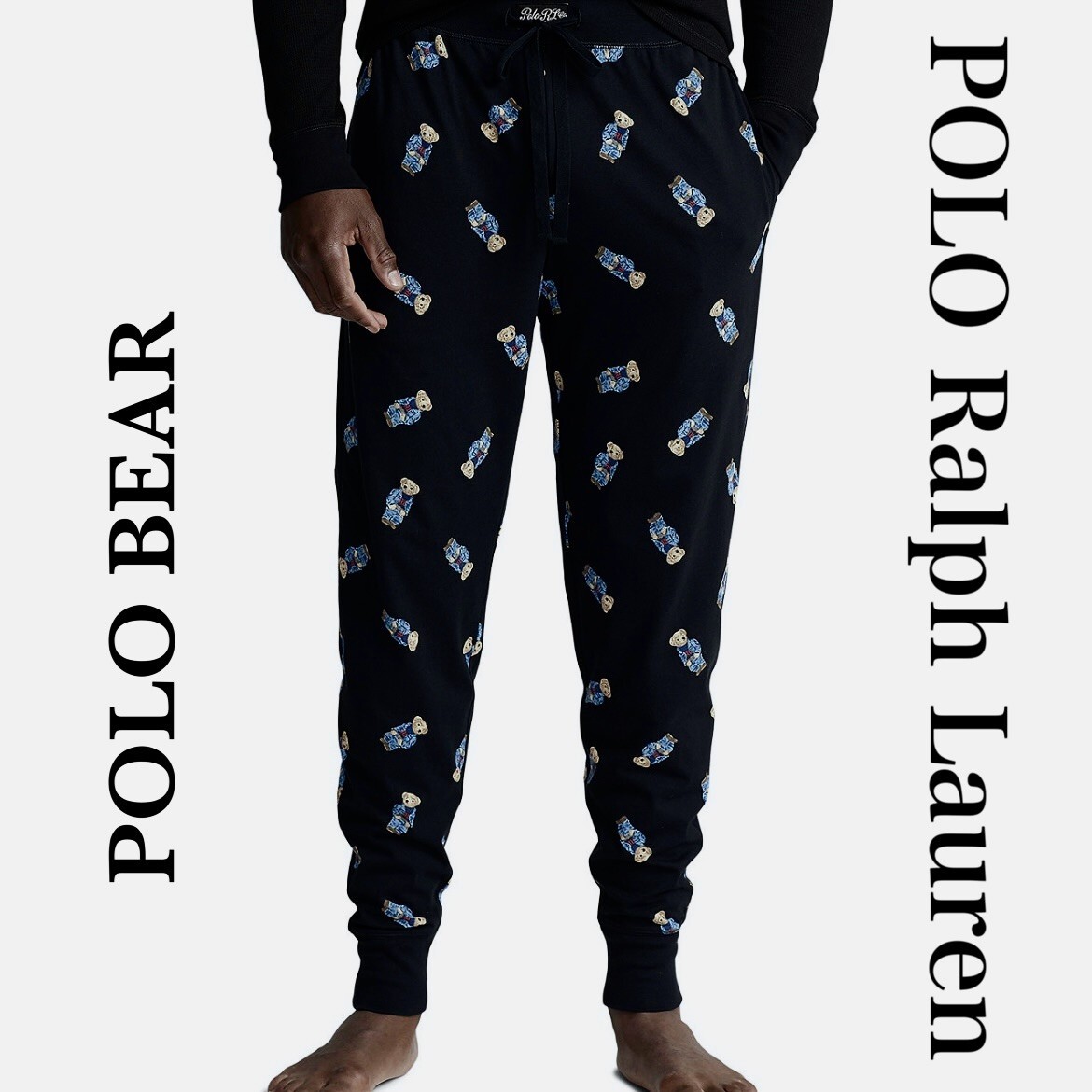 - POLO ポロ ラルフローレン ベア 新品 パンツ メンズ ボトムス パジャマ ルームウェア ブラック 黒 ロゴ 総柄 デニム ジーンズ ポロベア