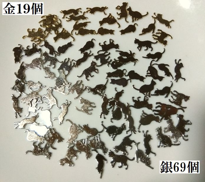 - 手芸用品こ91■猫の封入貼り付けパーツ88個セット■ゴールドシルバー*ピアスアクセサリーパーツハンドメイド