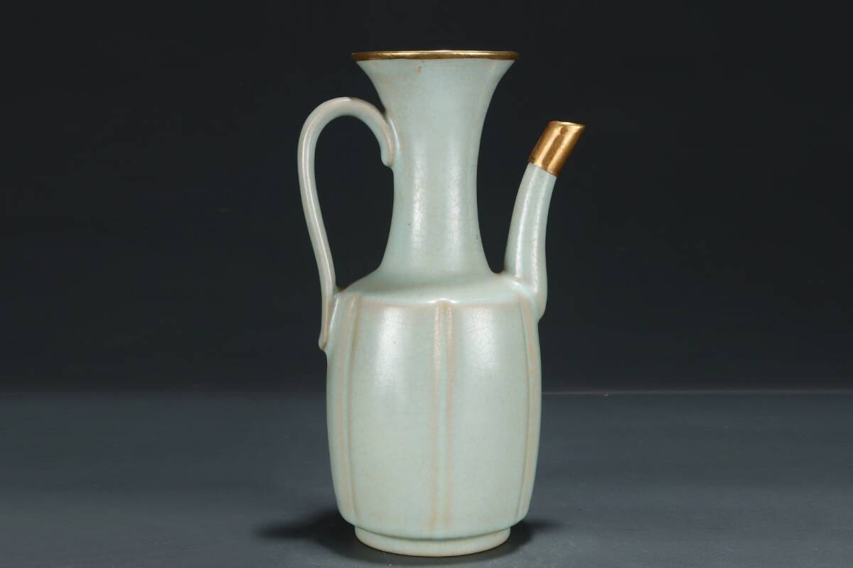 - 宋時代 汝窯 執壺 水注 唐物 箱付き 陶磁器 中国美術 古美術 置物 骨董品 高さ23.5cm 胴径14cm RG1208