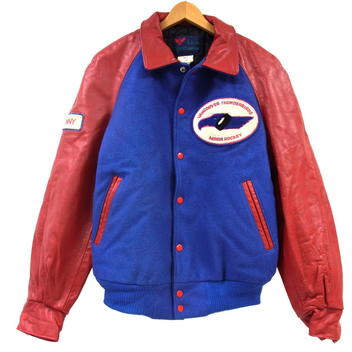 > 80~90s ヴィンテージ◆Totem Sportswear レターマンジャケット 袖革スタジャン カナダ製 メンズ