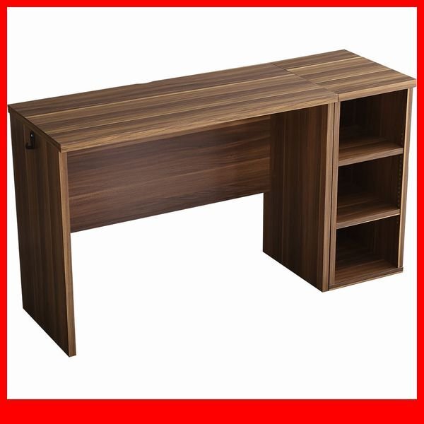> 机★新品/ヴィンテージ シンプルデスク90cm幅+サイドラック30cm幅/収納棚付き120cm幅万能ワークデスクに/木目調 茶系 ウォールナット/a3