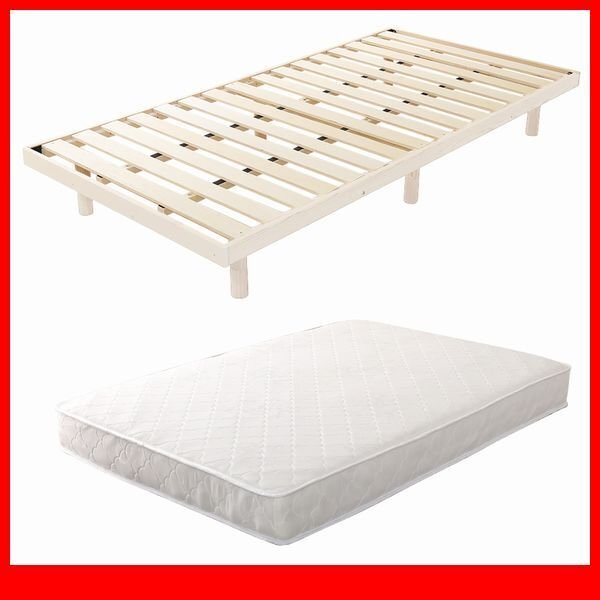 - すのこベッド★ポケットコイルマットレス付 3段階高さ調節 脚付きすのこベッド/シングル/コンセント付 北欧パイン材/ホワイトウォッシュ/a4