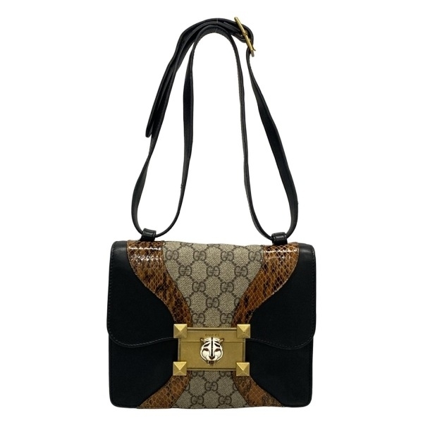 - グッチ GUCCI ショルダーバッグ 497995 GGプラス・GGスプリーム レザー 黒×ベージュ×ダークブラウン タイガー/ラインストーン バッグ