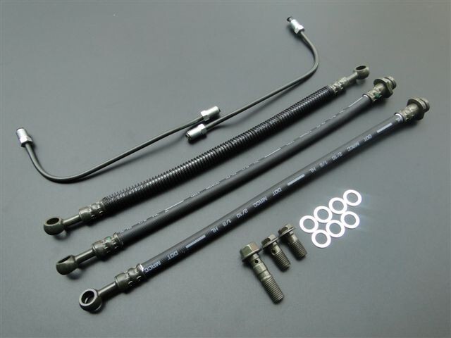 > 0884■CB400F/CB350F ブレーキホース黒フルセット★ダブルディスク用★上側ホース全長420mm★すぐ、ひび割れない日本製! ヨンフォア