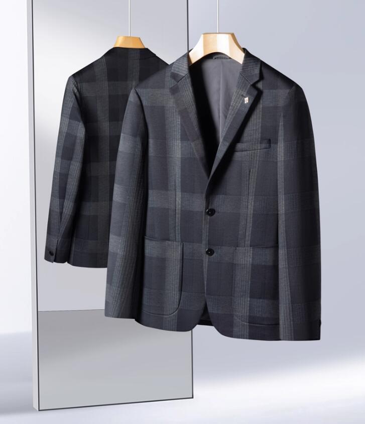 - 人気品XL 高品質 ウール混 テーラードジャケット メンズ 格子柄 スーツジャケット 紳士 厚手 秋冬 ビジネス カジュアル ブレザー/グレー