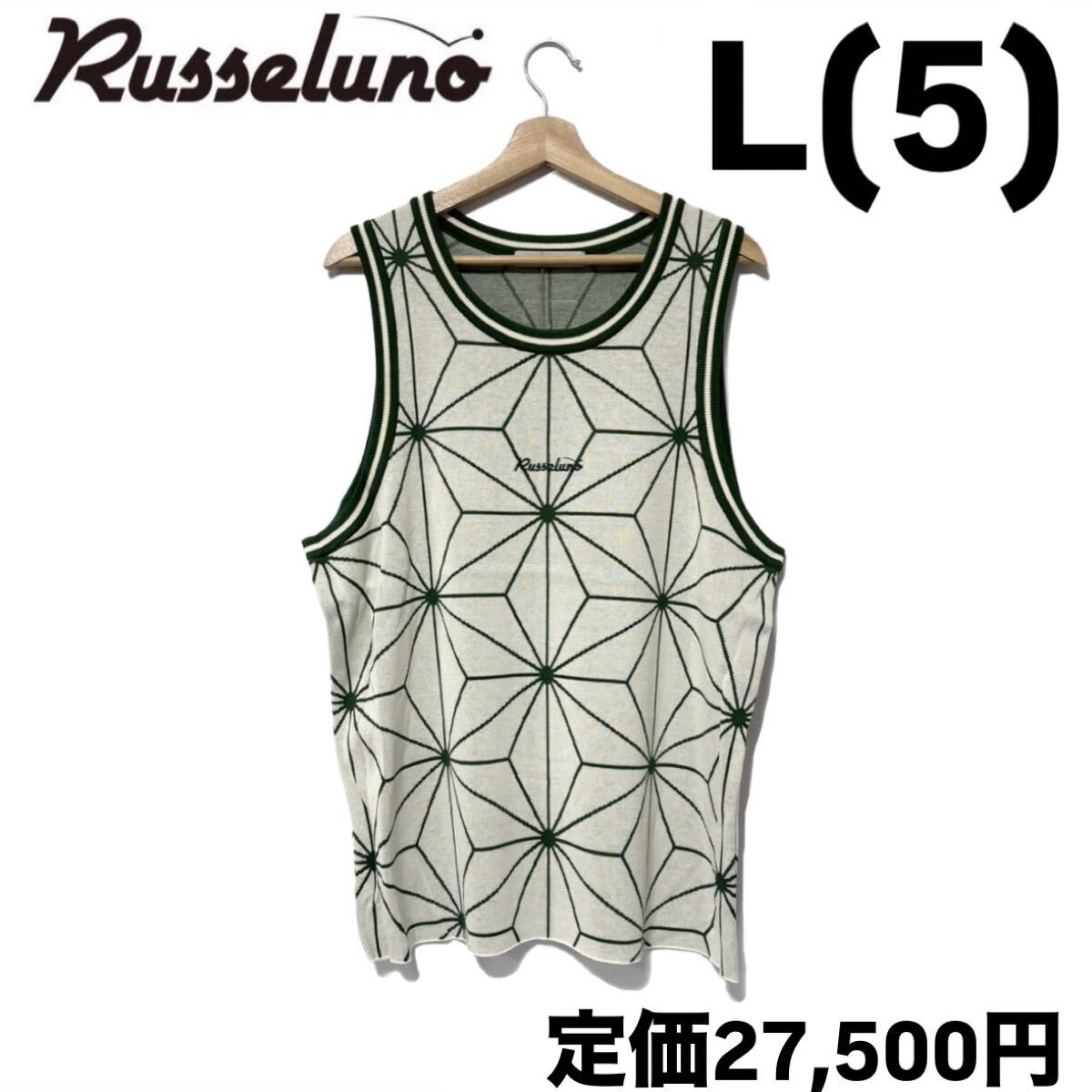 > 新品 ラッセルノ ゴルフ ゲーム ニット ベスト 幾何学柄 ホワイト L 5 ゴルフウェア RS-2330502