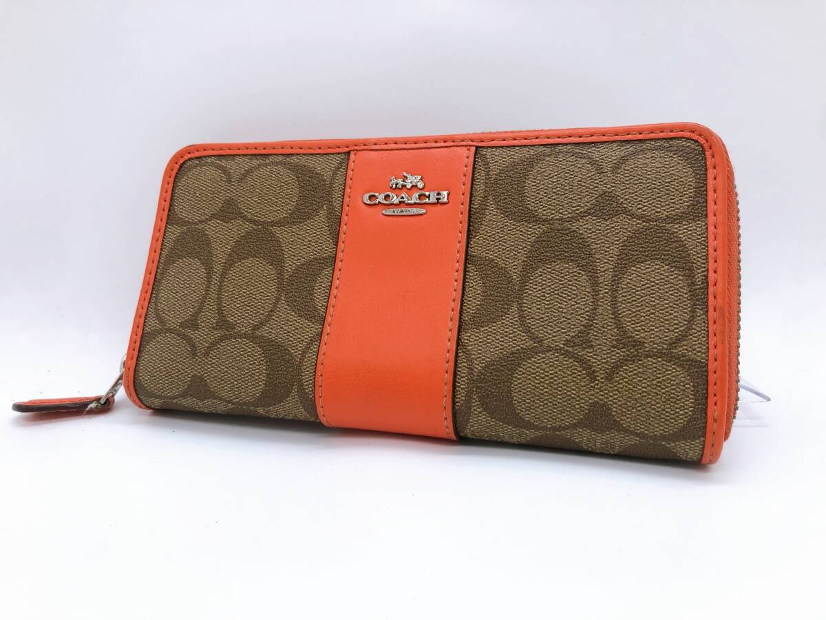> 【22022】COACH コーチ ラウンドジップ長財布 シグネチャー ジャンク品 オレンジ F54630 おしゃれ 便利 機能的 男女兼用 定番柄